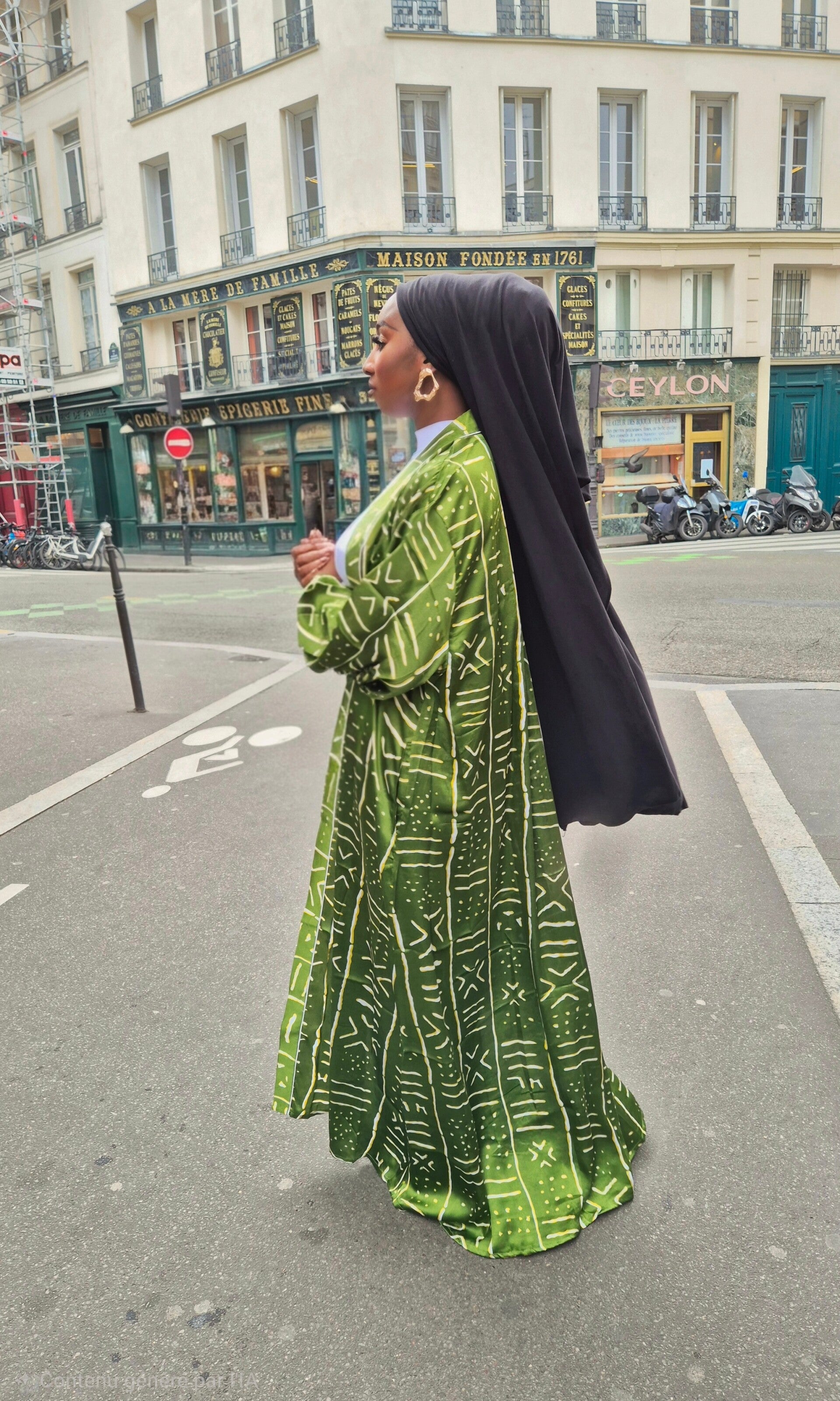 Cet ensemble kimono trois pièces pour femme, composé d'un long kimono en soie, d'un pantalon et d'une ceinture, est une pièce intemporelle. Le kimono, aux manches longues et au col ouvert, offre une allure classique et élégante. Le pantalon en coton, à taille haute, poches et bas larges, assure une silhouette flatteuse.