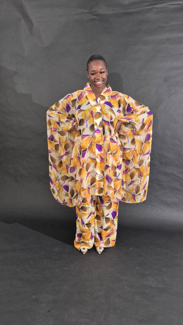 Soyez stylée de la tête aux pieds cette saison avec cet ensemble pantalon. Pratique et flatteur, ce modèle est un ajout essentiel à votre garde-robe de saison. Le haut de style oversize bi matière, en soie et mousseline, convient à toutes les morphologies. Le pantalon est doté d'une taille haute, de poches et d'un ourlet large pour une silhouette flatteuse.